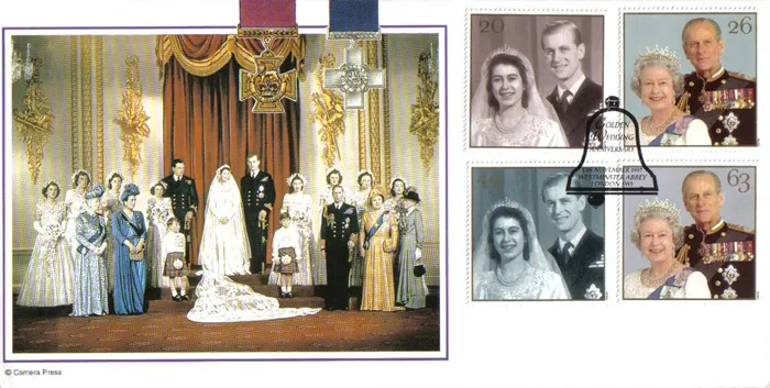 | Stamp Details: | 20p, 43p Wedding day Portrait 26p, 63p Present day Portrait |