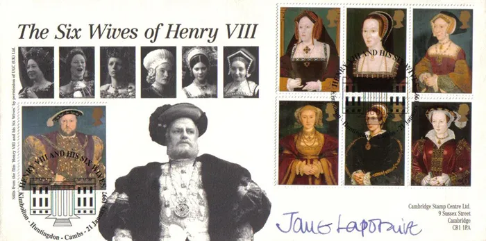 | Stamp Details: | 26p Henry VIII 26p Catherine of Aragon 26p Anne Boleyn 26p Jane Seymour 26p Anne of Cleves 26p Catherine Howard 26p Catherine Parr |