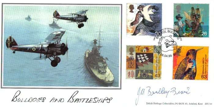 The above Royal Mail Settlers' Tale were issued on 06 April 1999 by Royal Mail and feature the following stamp designs: 20p Migration to Scotland; 26p Pilgrim Fathers; 43p Australia Colonisation; 63p Migration to UK. The Bulldogs and Battleships first day cover with the Filton, Bristol Bulldog, Special Handstamp postmark has been produced by British Heritage Collectables and features these stamps which can make a very collectible and lovely gift.