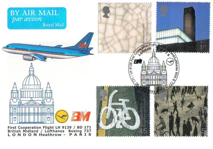 | Postmark: | London, First British Midland/Lufthansa Cooperation Flight, Special Handstamp |