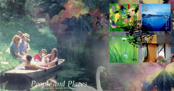 The above Royal Mail People & Place were issued on 06 June 2000 by Royal Mail and feature the following stamp designs: 2nd Millennium Greens; 1st Gateshead Bridge; 45p Mile End Park; 65p On the Line (Greenwich). The Picnic on the River first day cover with the London, Mile End Road, Special Handstamp postmark has been produced by Steven Scott and features these stamps which can make a very collectible and lovely gift.