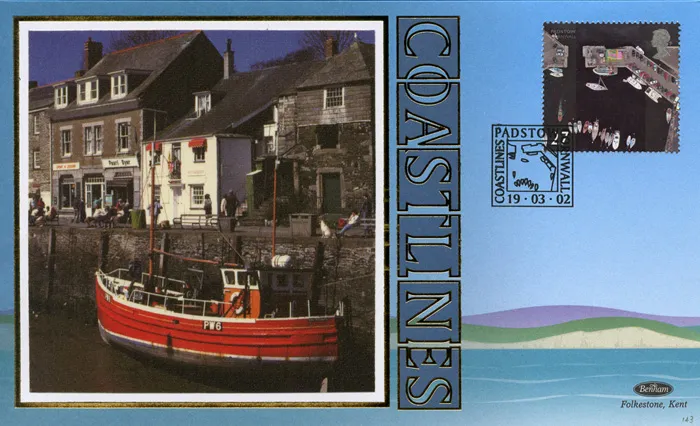 The above Royal Mail Coastlines were issued on 19 March 2002 by Royal Mail and feature the following stamp designs: 1st Studland; 1st Luskentyre; 1st White Cliffs; 1st Padstow; 1st Broadstairs; 1st St. Abb's; 1st Dunster; 1st Newquay; 1st Portrush; 1st Sand-spit. The Padstow Harbour first day cover with the Padstow, Special Handstamp postmark has been produced by Benham and features these stamps which can make a very collectible and lovely gift.