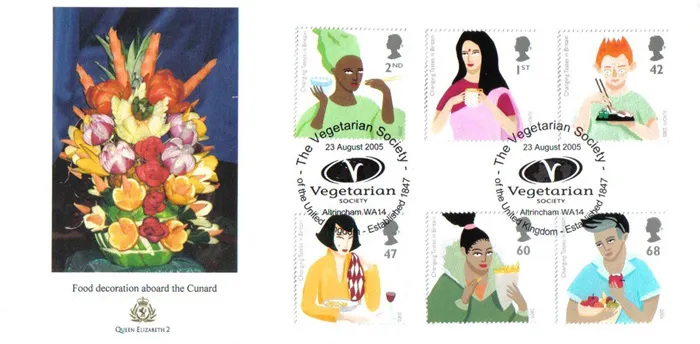 | Stamp Details: | 2nd Rice 1st Tea 42p Sushi 47p Pasta 60p Chips 68p Apples |