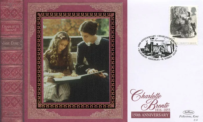The above Royal Mail Jane Eyre were issued on 24 February 2005 by Royal Mail and feature the following stamp designs: 2nd Mr Rochester; 1st Jane receives plea for help from Rochester; 40p Jane arrives at the George Inn; 57p Adele recites to Jane; 68p & £1.12 The young Jane at Lowton School.. The Jane and Adele first day cover with the Haworth, The Parsonage, Special Handstamp postmark has been produced by Benham and features these stamps which can make a very collectible and lovely gift.
