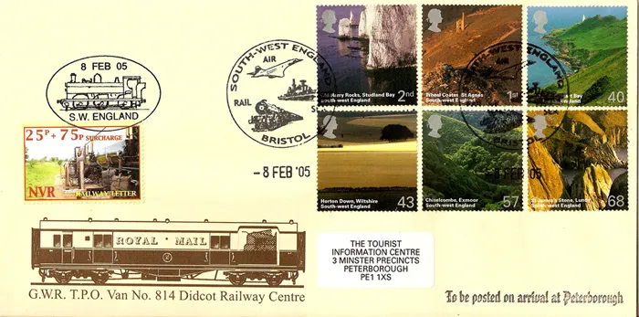 | Stamp Details: | 2nd Old Harry Rocks, Studland Bay 1st Wheal Coates, St. Agnes 40p Start Point, Start Bay 43p Horton Down, Wiltshire 57p Chislecombe, Exmoor 68p St. James's Stone, Lundy |