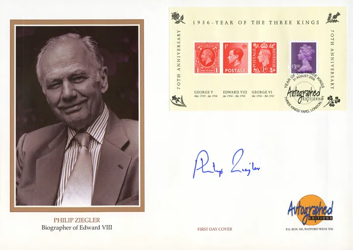 The above Royal Mail Year of the Three Kings: Miniature Sheet were issued on 31 August 2006 by Royal Mail and feature the following stamp designs: £3 Definitive. The Philip Ziegler first day cover with the London W1, Autographed Editions, Special Handstamp postmark has been produced by Westminster and features these stamps which can make a very collectible and lovely gift.