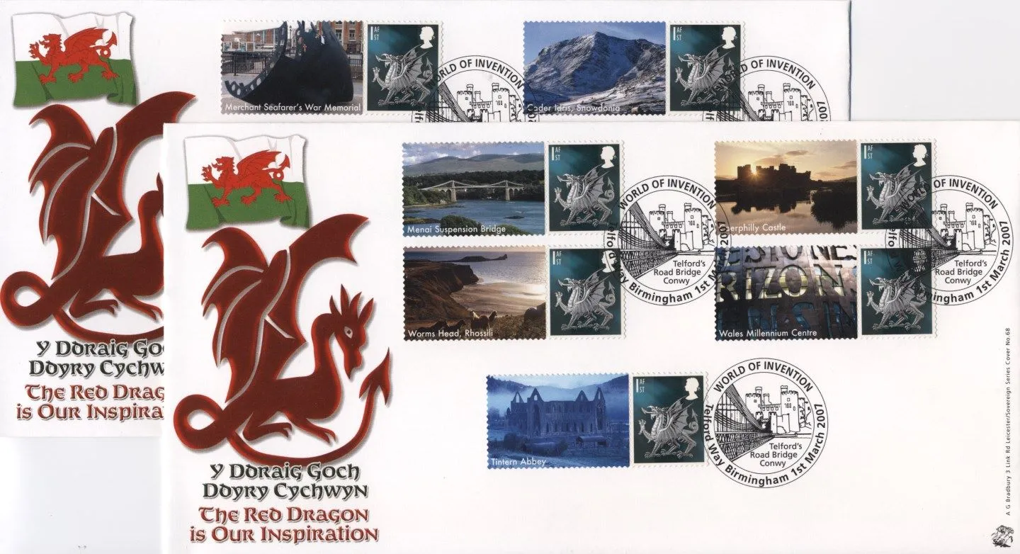 | Stamp Details: | 1st Wales Country Pictorial plus labels |