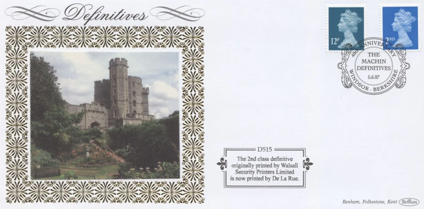 The above Royal Mail Self Adhesive: Revised PiP Text: 12 x 2nd were issued on 05 June 2007 by Royal Mail and feature the following stamp designs: . The Castle first day cover with the Windsor, Special Handstamp postmark has been produced by Benham and features these stamps which can make a very collectible and lovely gift.