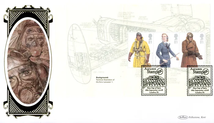 The above Royal Mail PSB: RAF Uniforms - Pane 2 were issued on 18 September 2008 by Royal Mail and feature the following stamp designs: . The Battle of Britain Monument, Victoria Embankment first day cover with the London, Autumn Stampex - First Day of Issue, Special Handstamp postmark has been produced by Benham and features these stamps which can make a very collectible and lovely gift.