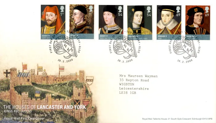 | Stamp Details: | 1st Henry IV 1st Henry V 54p Henry VI 54p Edward IV 69p Edward V 69p Richard III |