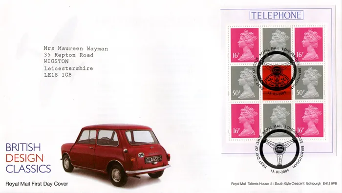 | Postmark: | Longbridge, Tallents House, First Day of Issue - Steering Wheel, Special Handstamp, Special Handstamp |