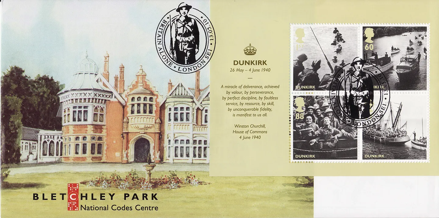 | Stamp Details: | 1st Evacuation of Soldiers 60p The Little Fleet 88p Soldiers on Royal Navy Destroyer 97p Two Boats from Dunkirk |