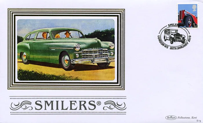 The above Royal Mail Smilers: Miniature Sheet were issued on 26 January 2010 by Royal Mail and feature the following stamp designs: 1st Aeroplane; 1st Car; 1st Royal Crown Seal; 1st Birthday Cake; E Bird carrying letter; 1st Train; 1st Ocean Liner; 1st Poppy; 1st Present; W Plane with Hello banner. The Early Saloon Car first day cover with the London, Vintage Car, Special Handstamp postmark has been produced by Benham and features these stamps which can make a very collectible and lovely gift.