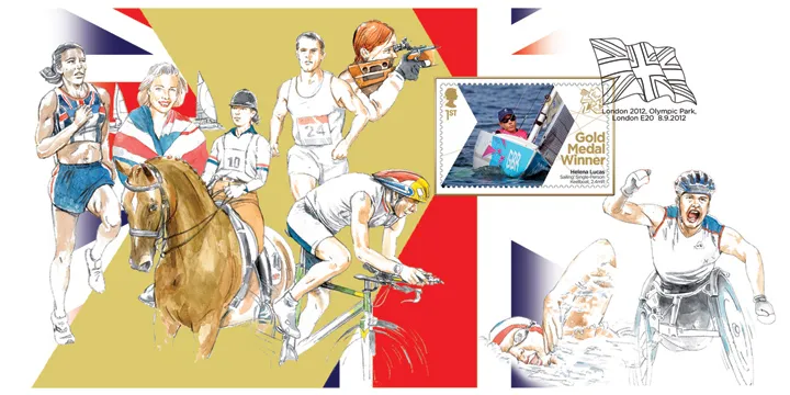 The above Royal Mail Sailing - Single-Person Keelboat, 2.4mR: Paralympic Gold Medal 26: Miniature Sheet were issued on 08 September 2012 by Royal Mail and feature the following stamp designs: 2 x 1st Helena Lucas. The Athletes first day cover with the London, Olympic Park - Union Flag, Special Handstamp postmark has been produced by Bradbury and features these stamps which can make a very collectible and lovely gift.