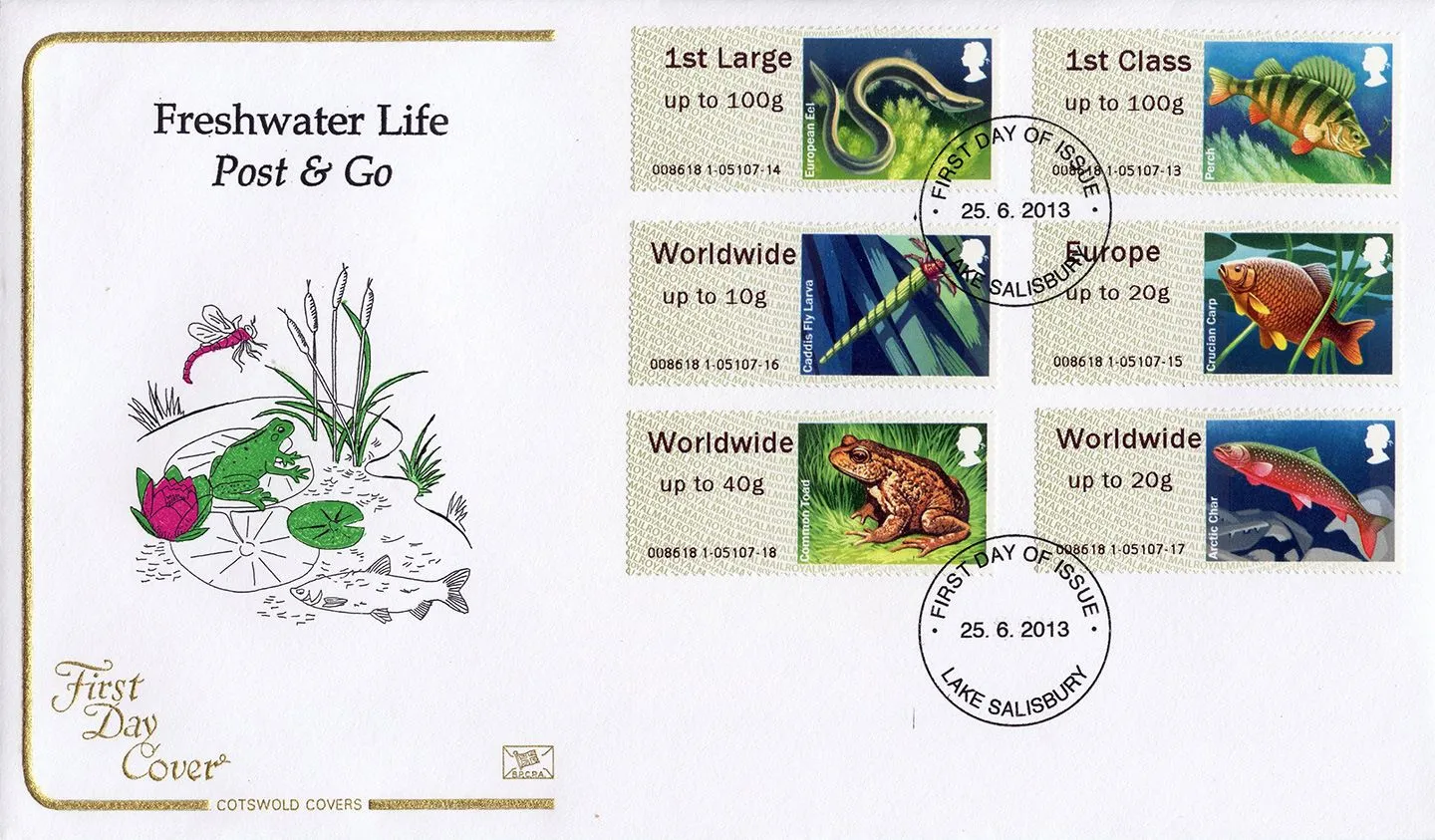 | Stamp Details: | 1st Perch 1st European Eel 1st Crucian Carp 1st Caddis Fly Larva 1st Arctic Char 1st Common Toad |