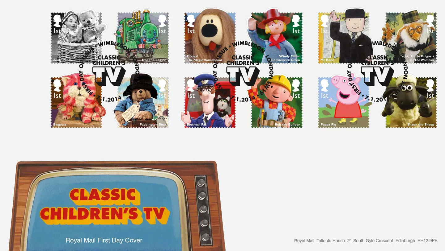 | Stamp Details: | 1st Andy Pandy 1st Bagpuss 1st Bob the Builder 1st Magic Roundabout 1st Camberwick Green 1st Ivor the Engine 1st Mr Benn 1st Paddington Bear 1st Peppa Pig 1st Postman Pat 1st Shaun the Sheep 1st The Wombles |