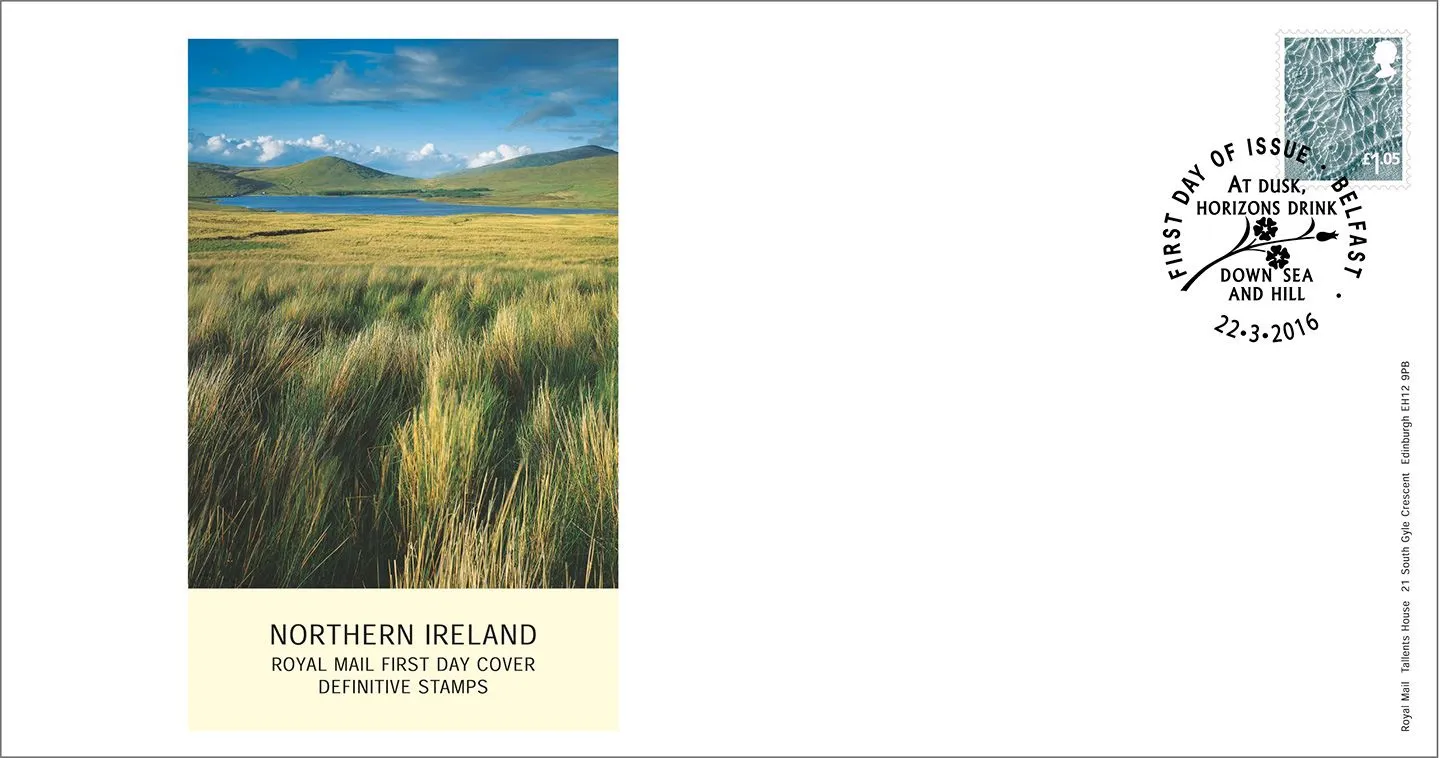 | Postmark: | Belfast, At dusk, horizons drink down sea and hill, Special Handstamp |