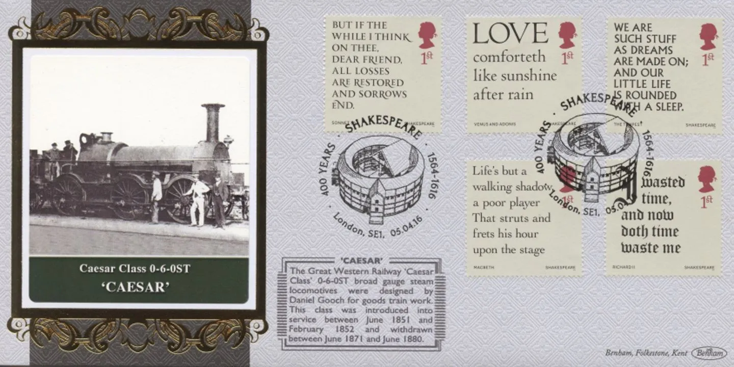 | Stamp Details: | 1st Hamlet 1st Julius Ceasar 1st Romeo and Juliet 1st As You Like It 1st Much Ado About Nothing 1st Sonnet 1st Venus and Adonis 1st The Tempest 1st Macbeth 1st Richard II |