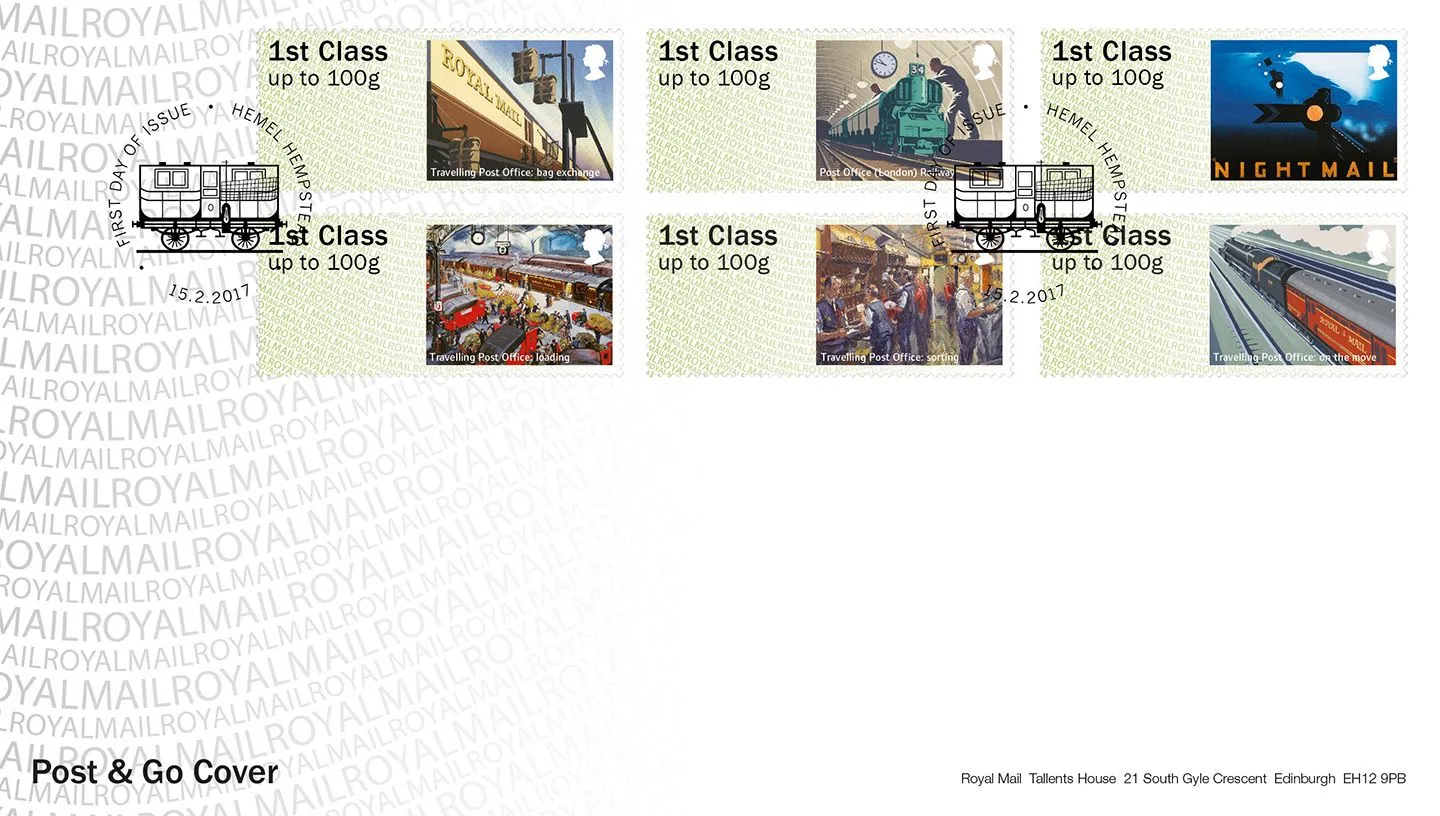 | Stamp Details: | 1st Bag exchange 1st Post Office undergound railway 1st Night Mail film poster 1st Loading mail 1st Sorting carriage 1st On the move |
