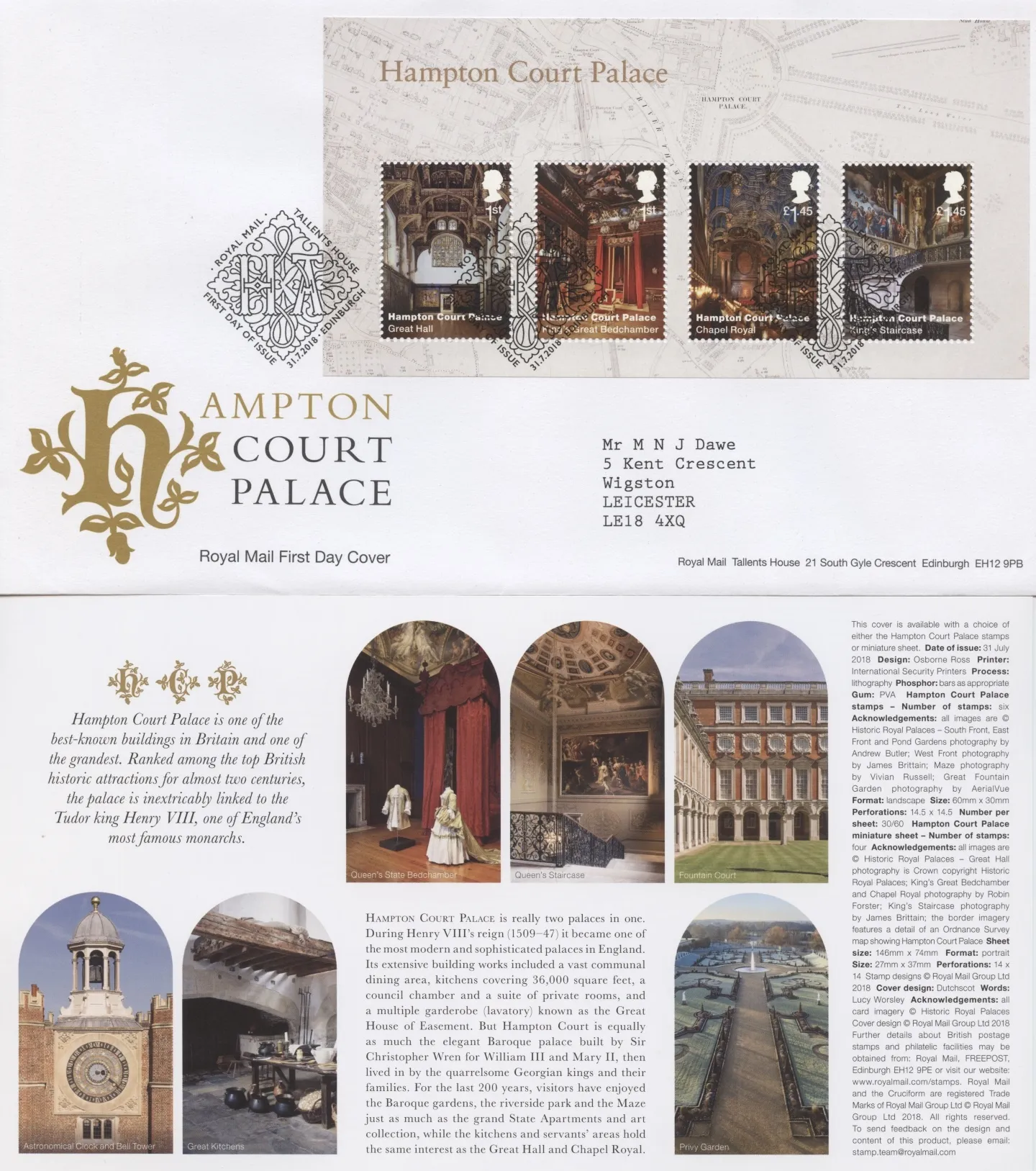 | Issue: | 31 July 2018 - Hampton Court: Miniature Sheet |