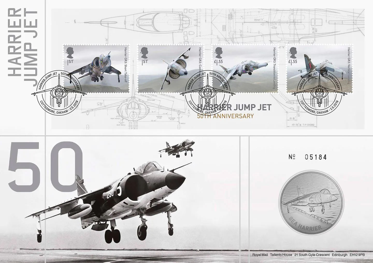 The above Royal Mail British Engineering: Miniature Sheet were issued on 02 May 2019 by Royal Mail and feature the following stamp designs: 1st Harrier Jump Jet; 1st Harrier Jump Jet; £1.55 Harrier Jump Jet; £1.55 Harrier Jump Jet. The Harrier Jump Jet first day cover with the Cottesmore, Oakham, Special Handstamp postmark has been produced by Royal Mint and features these stamps which can make a very collectible and lovely gift.