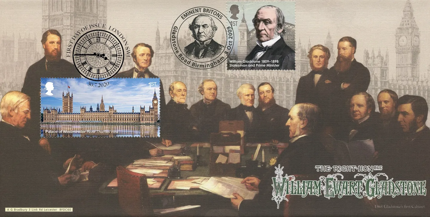 The above Royal Mail Palace of Westminster were issued on 30 July 2020 by Royal Mail and feature the following stamp designs: 1st View from Old Palace Yard; 1st River Thames view; 1st Elizabeth Tower; £1.68 Commons Chamber; £1.68 Central Lobby; £1.68 Lords Chamber. The Gladstone's Cabinet first day cover with the London SW1, Big Ben's Clock, Special Handstamp postmark has been produced by Bradbury and features these stamps which can make a very collectible and lovely gift.