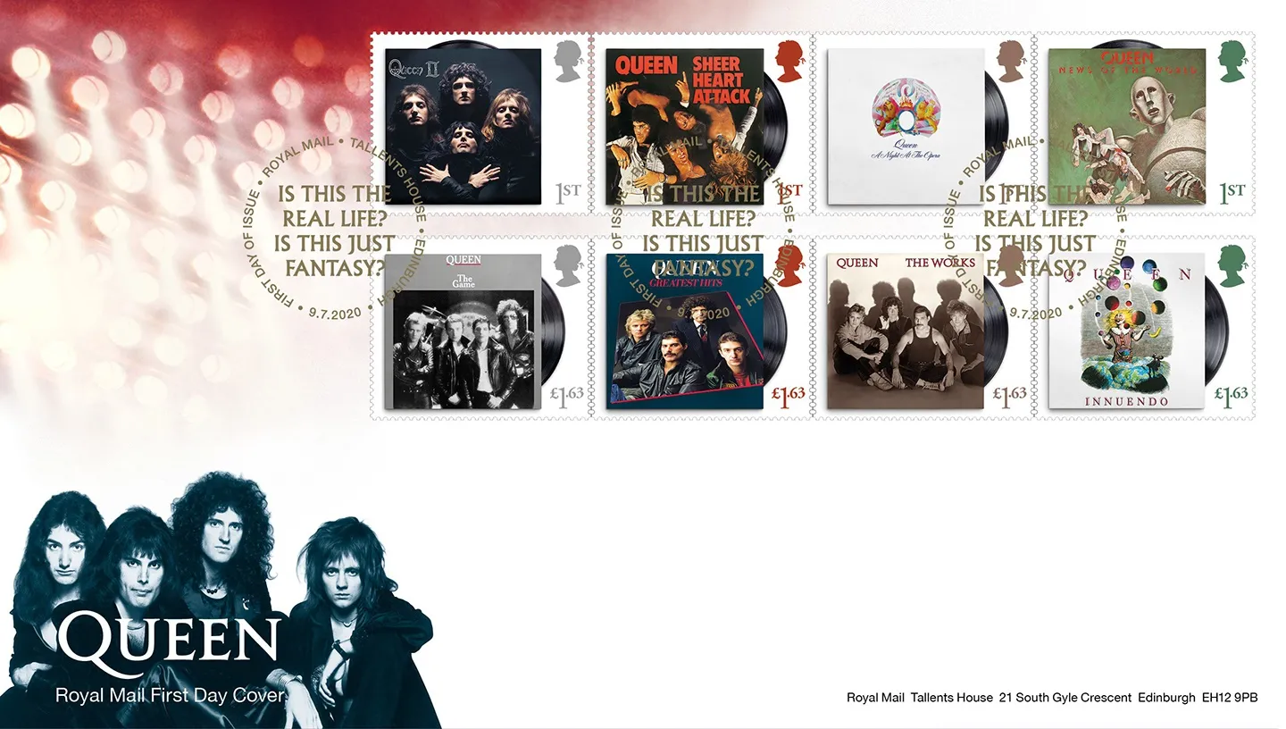 | Stamp Details: | 1st Queen II 1st Sheer Heart Attack 1st A Night at the Opera 1st News of the World £1.63 The Game £1.63 Greatest Hits £1.63 The Works £1.63 Innuendo |