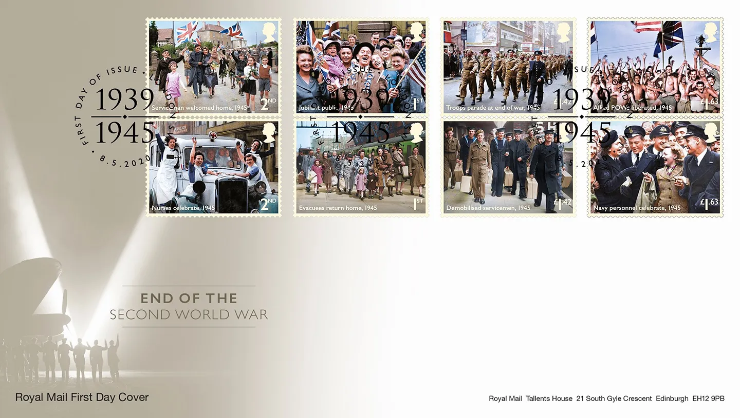 | Stamp Details: | 2nd A serviceman returns home 2nd Jubilant nurses in Liverpool 1st Ecstatic crowds in Piccadilly 1st Evacuees return from Leicester £1.42 Victory over Japan in London £1.42 Demobilisation centre £1.63 Allied prisoners cheer rescuers £1.63 A Wren proposes a toast |