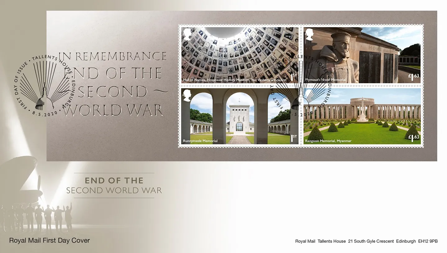 | Stamp Details: | 1st Class Yad Vashem, Jerusalem 1st Class Runnymede Memorial Egham £1.55 Plymouth Naval Memorial £1.55 Rangoon Memorial, Myanmar |
