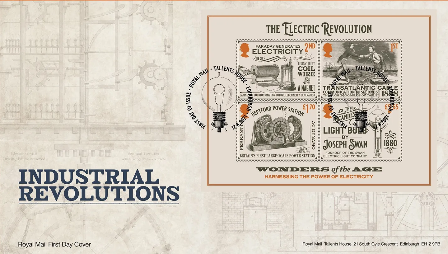 | Stamp Details: | 2nd Electricity 1st Transatlantic Cable £1.70 Power Station £2.55 Light Bulb |