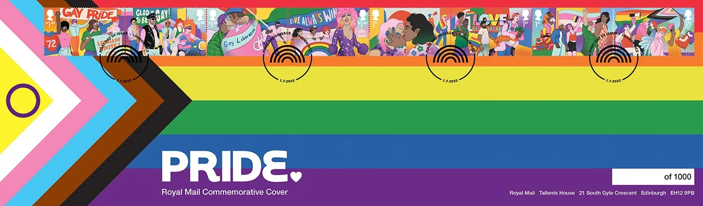 | Stamp Details: | 1st Kiss 1st Love 1st Parade 1st Rally £1.85 Lesbians Unite £1.85 Glad to be Gay £1.85 Gay Liberation £1.85 Love Always Wins |