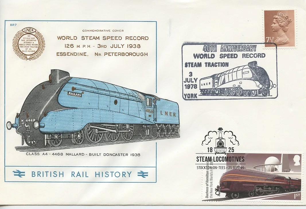 | Notes: | Mallard WORLD STEAM SPEED RECORD Double dated cover 126 MPH 3rd July 1938 Essendine - Peterborough. |